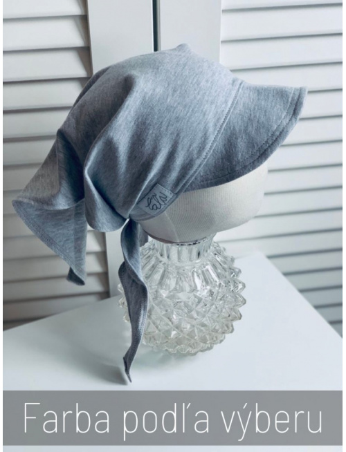Úpletová šatka so šiltom na uzol, ktorá skvelo kryje ušká, preto je využiteľná aj ako náhrada čiapočky, kde máte vzadu skvelé vetranie a vôľu na copík.