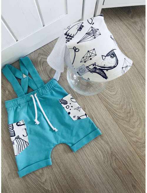Biela dierková šatka SUMMER so šiltom - na viazanie - Rybky
