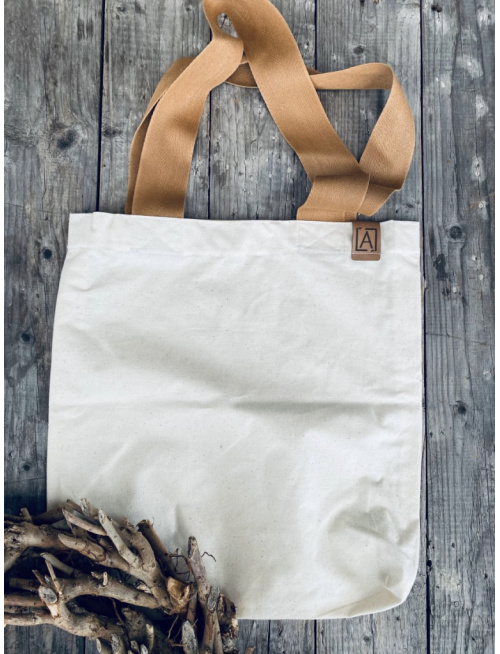 Taška z režného plátna s rúčkou z hnedého popruhu