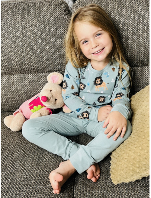 Detské pyžamko s rastúcimi manžetami LEVÍK na mineral - klasik strih