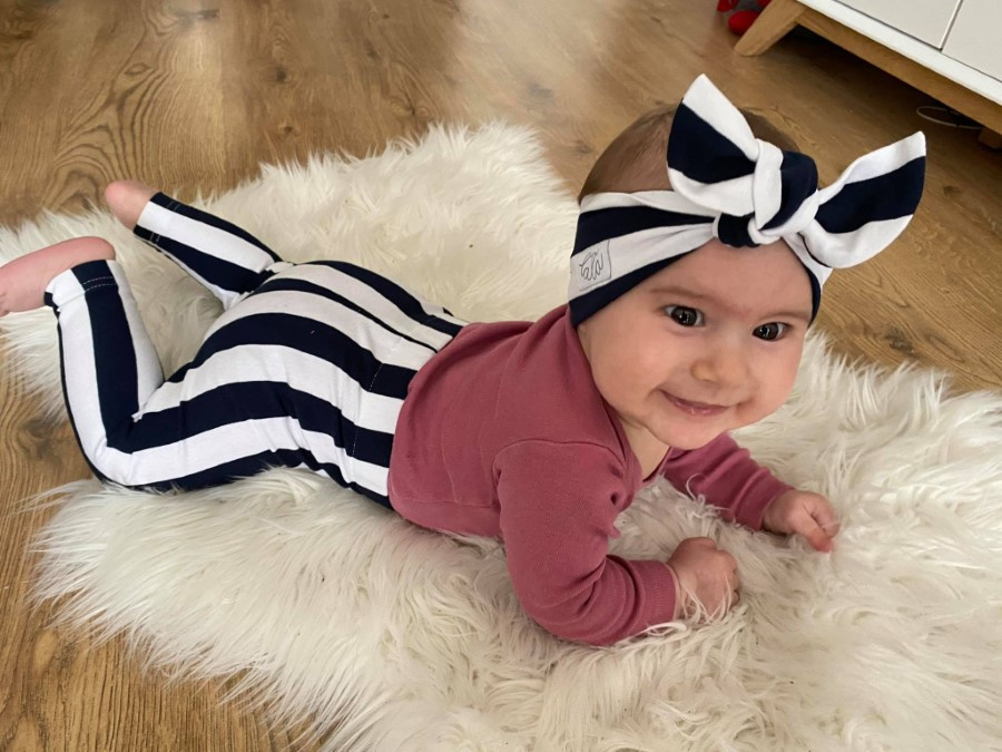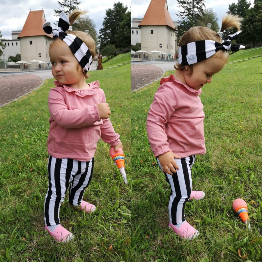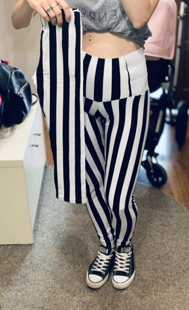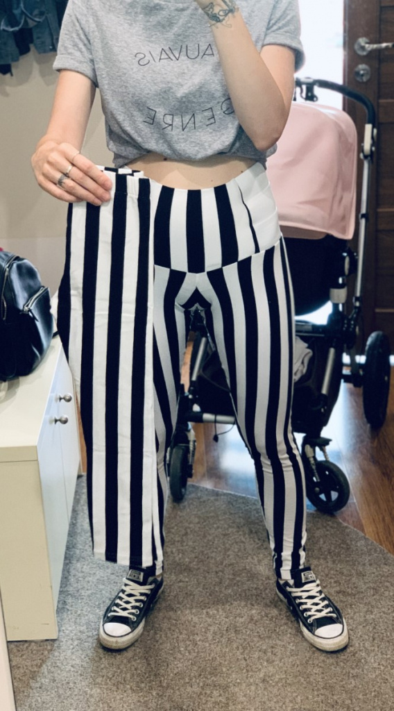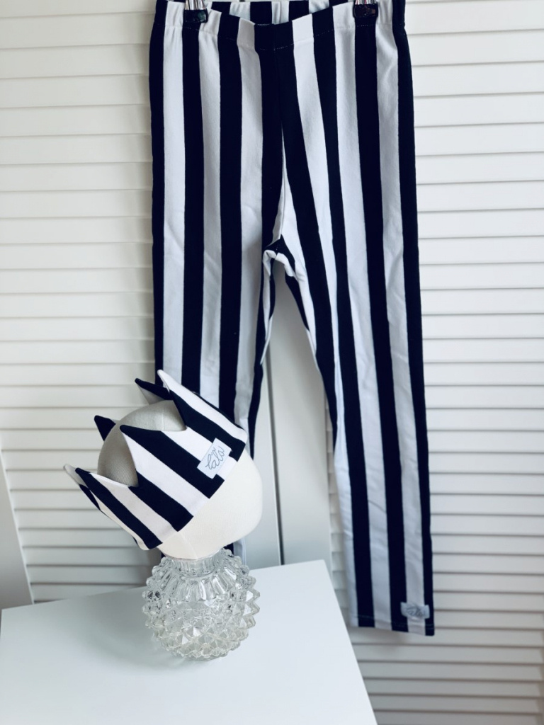 Pohodlné úpletové legíny v pásikavom vzore. Od strihu úpletových legín sa odvíja strih legín z teplákoviny, warmkeepru a parmy (ale v širšej verzii), to znamená, že všetky úpletove leginy sú "na telo".