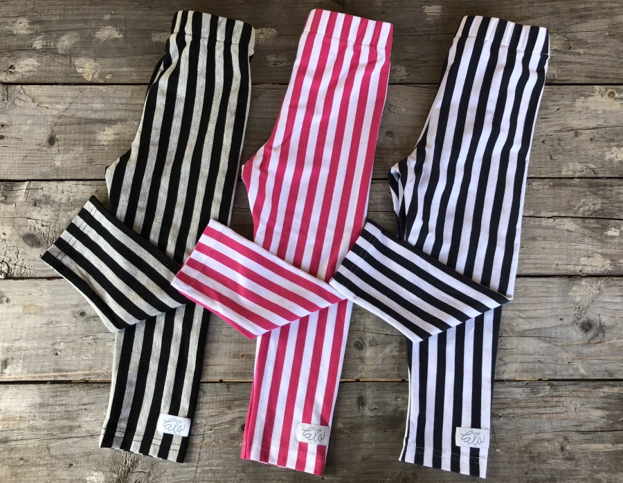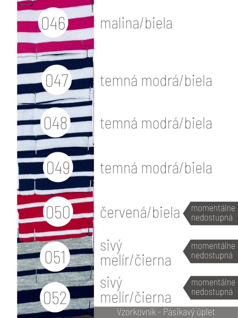 Pohodlné úpletové legíny v pásikavom vzore. Od strihu úpletových legín sa odvíja strih legín z teplákoviny, warmkeepru a parmy (ale v širšej verzii), to znamená, že všetky úpletove leginy sú "na telo".