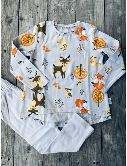 Detské pyžamko s rastúcimi manžetami Lesné zvieratká na sivej - tunikový strih