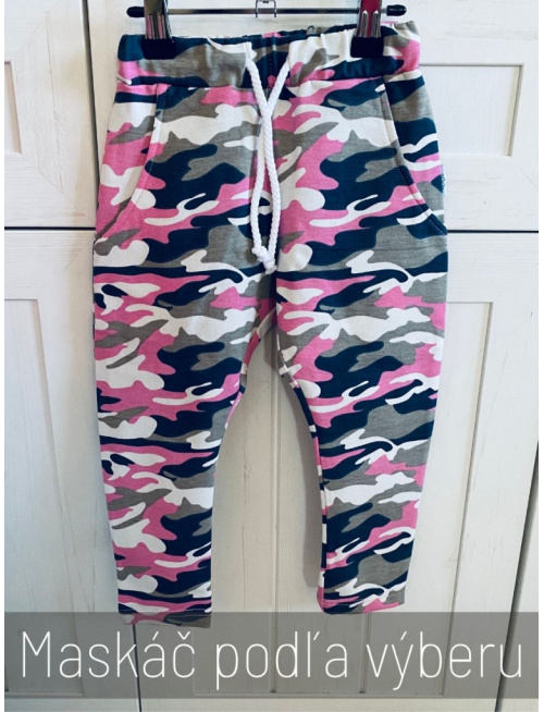 Teplákové nohavice v strihu NEW Maskáč. Tento strih má rozšírený sed (ale nie pudlový), vďaka čomu sú gate maximálne pohodlné napriek tomu, že sú od kolien dole zúžené. Pás je taktiež ušitý z teplákoviny. Po novom každé nohavice štepujeme v páse, čo im dodáva ešte prepracovanejší vzhľad. Nohavice sú obohatené dvomi prednými vreckami a jedným zadným vreckom. Strih NEW je unikátny, navrhnutý v našej ĽAĽA dielni, nenájdete ho nikde inde.
