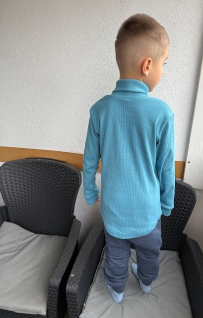 Roláčik ušitý z rebroviny. Narozdiel od roláku vo verzii GIRL je zadný diel tohto roláčika predĺžený. Rukáv je ukončený klasickou (nerastúcou) manžetou. Dolný kraj roláka je opracovaný. Strih je volnejší, strihovo vhodný najmä pre chalanov, ale aj pre dievčatá, ktoré majú rady športovejšie strihy.