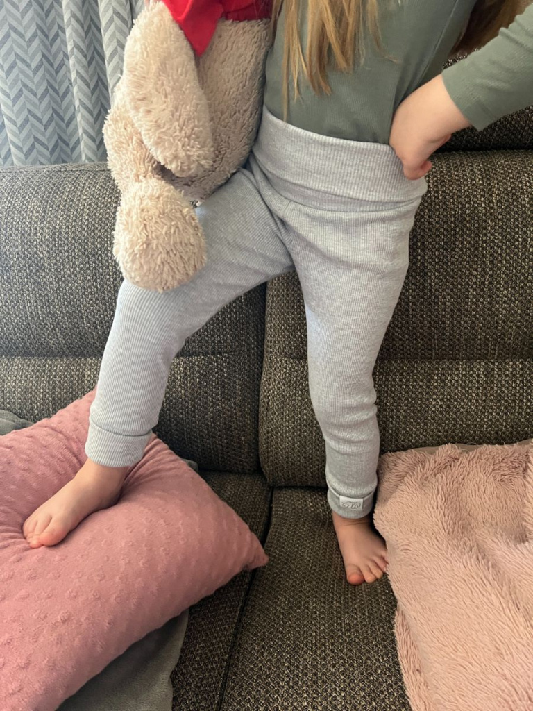 Vysokoelastické gate z rebroviny ukončené rastúcou manžetou. Gate sú využiteľné aj ako spodné gate v zime alebo namiesto pančucháčov. Pás je širší s vyhnutým lemom, netlačí na brušku, lemom si regulujete výšku pásu, prípadne si ním viete zakryť kompletne celé kríže.