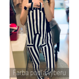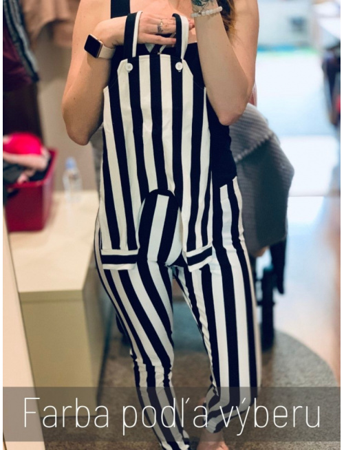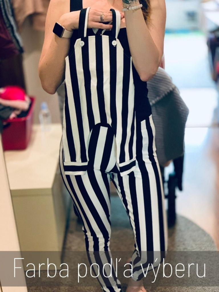 Pohodlné teplákové pásikavé gate na traky. Traky sú na dva gombíky, aby boli mierne rastúce. Gate majú vzadu jedno vrecko na pravej strane. Gate sú pudlového no úzkeho strihu ukončené manžetou. Chrbátik je navrhnutý tak, aby chránil kríže.
