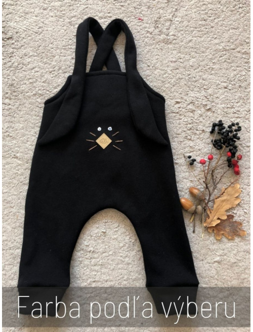 Pohodlné warmkeeper gate na traky. Traky sú ušité do tvaru ZAJAČIK uší. Zapínanie je z vnútornej strany ucha. Traky sú na dva gombíky, aby boli mierne rastúce. Gate sú pudlového no úzkeho strihu ukončené manžetou. Chrbátik je navrhnutý tak, aby chránil kríže.