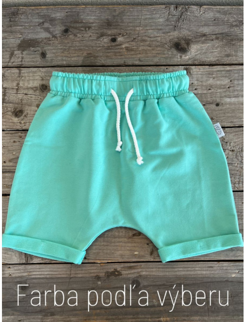 Teplákové krátke gate s vyhnutým dolným krajom. Tento pudlový strih je veľmi pohodlný. Hĺbka sedu nie je prehnaná, je navrhnutá tak, aby sa drobcovi dobre šantilo aj na odrážadle. V páse je funkčná šnúrka. Gate sú bez vreciek.