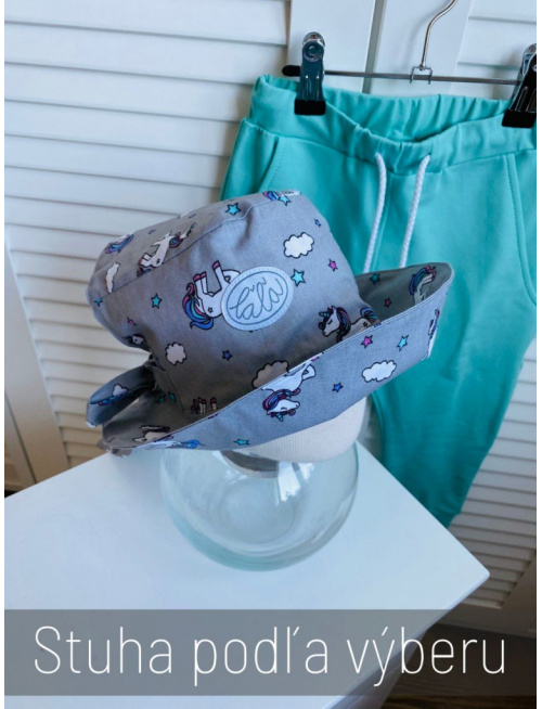 V lete by nemala byť žiadna hlávka bez klobúka. Klobúk je navrhnutý tak, aby bol v pravom slova zmysle rastúcim. Má veľký otvor vzadu a tým pádom sadne na každý obvod hlávky, ale kvôli hĺbke sme ho navrhli v štyroch veľkostiach. Klobúk využijete viacero sezón. Vnútro klobúka je stále podšité bielou bavlnou. Šilt sa odkláňa od tváričky mierne. Stuha sa pôvodne navrhla úzka kvôli malým bábätkám a chlapcom, ale máte ju v obľube aj pre väčšie slečny, tak sme ponechali na výber obe verzie stuhy úzka (2,5 cm) alebo široká (5 cm). Zo širokej stuhy uviažete bohatú mašľu pre veľké a malé parádnice.