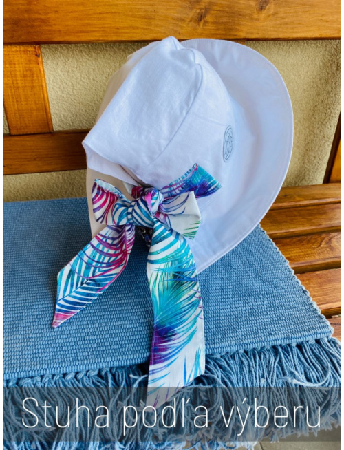 V lete by nemala byť žiadna hlávka bez klobúka. Klobúk je navrhnutý tak, aby bol v pravom slova zmysle rastúcim. Má veľký otvor vzadu a tým pádom sadne na každý obvod hlávky, ale kvôli hĺbke sme ho navrhli v štyroch veľkostiach. Klobúk využijete viacero sezón. Vnútro klobúka je stále podšité bielou bavlnou. Šilt sa odkláňa od tváričky mierne. Stuha sa pôvodne navrhla úzka kvôli malým bábätkám a chlapcom, ale máte ju v obľube aj pre väčšie slečny, tak sme ponechali na výber obe verzie stuhy úzka (2,5 cm) alebo široká (5 cm). Zo širokej stuhy uviažete bohatú mašľu pre veľké a malé parádnice.