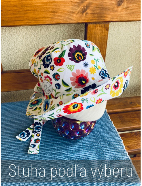 UPOZORNENIE: Okrem predvolenej farby/vzoru stuhy, ktorá je na fotke, si môžete vybrať aj inú farbu stuhy zo vzorkovníka - 100% pevná bavlna - jednofarebná. Klobúk so stuhou vo vami vybranej farbe vám s radosťou ušijeme. :) Ak zvolíte v kolónke FARBA možnosť "stuha podľa vlastného výberu zo vzorkovníka", prosím zadajte v závere objednávky do kolónky POZNÁMKA Kód tohto produktu + kód vzorky látky, v ktorej si želáte stuhu na klobúk ušiť. Napríklad: Kód produktu: 0785, Farba/vzor stuhy: Biela (67).