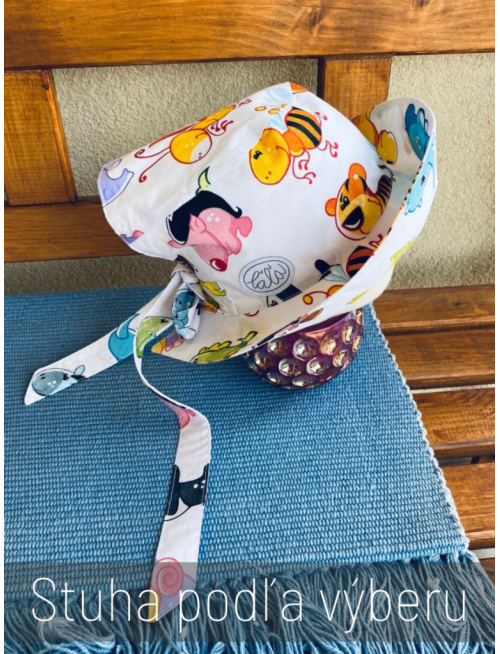 UPOZORNENIE: Okrem predvolenej farby/vzoru stuhy, ktorá je na fotke, si môžete vybrať aj inú farbu stuhy zo vzorkovníka - 100% pevná bavlna - jednofarebná. Klobúk so stuhou vo vami vybranej farbe vám s radosťou ušijeme. :) Ak zvolíte v kolónke FARBA možnosť "stuha podľa vlastného výberu zo vzorkovníka", prosím zadajte v závere objednávky do kolónky POZNÁMKA Kód tohto produktu + kód vzorky látky, v ktorej si želáte stuhu na klobúk ušiť. Napríklad: Kód produktu: 0786, Farba/vzor stuhy: Biela (67).