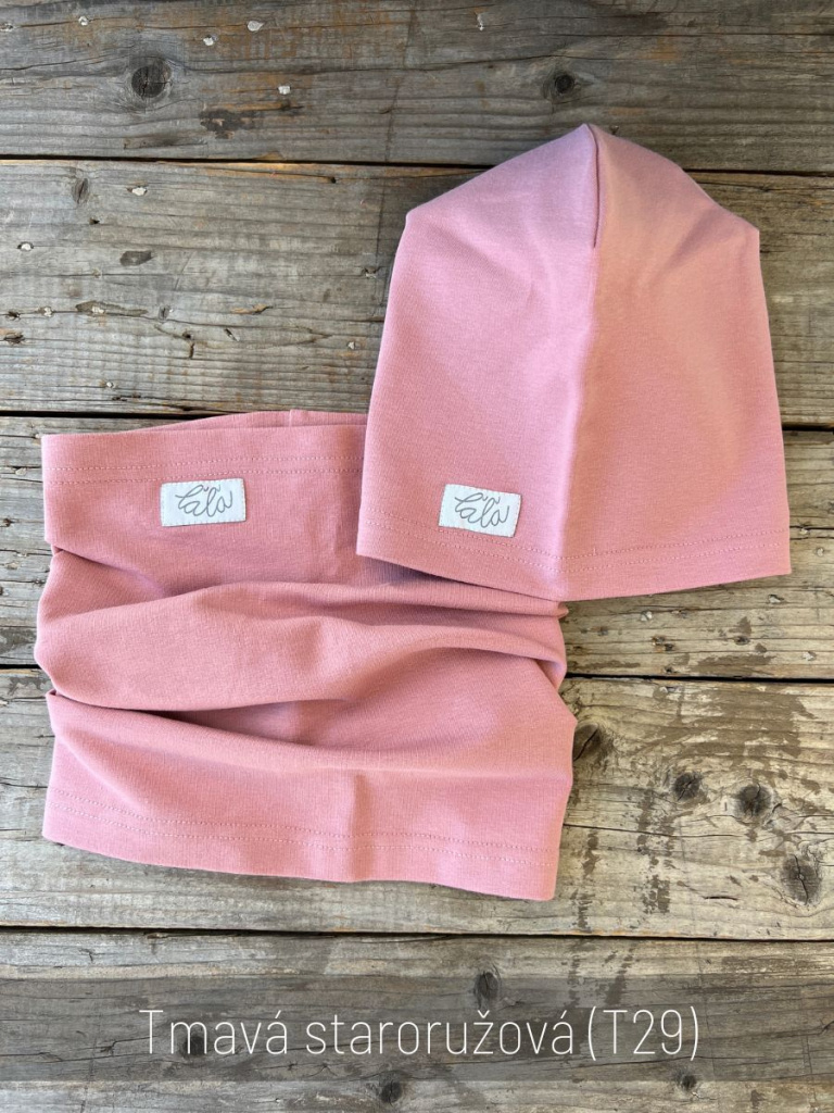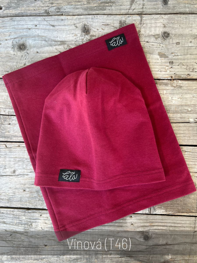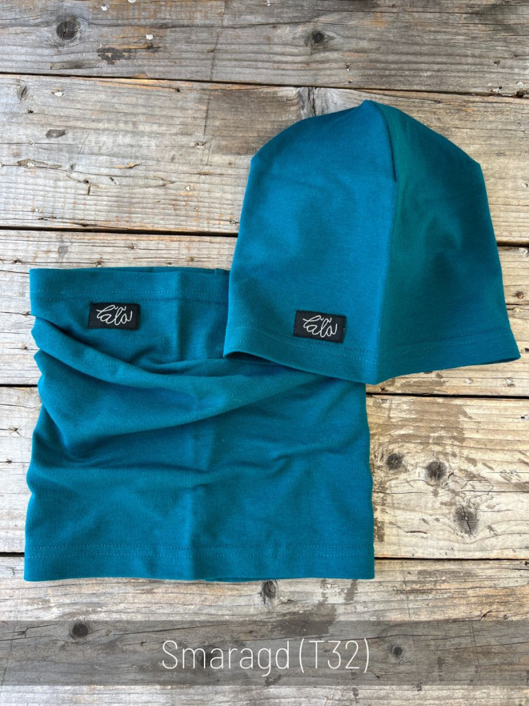 Príjemne elastický set tepláková čiapka v predĺženom strihu + tunel.