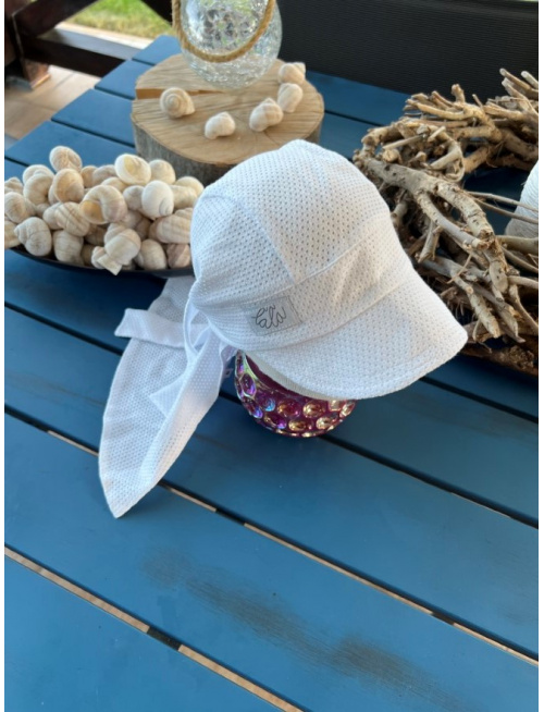 Pirátka so šiltom na viazanie - dierková - BIELA
