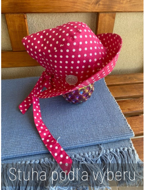 UPOZORNENIE: Okrem predvolenej farby/vzoru stuhy, ktorá je na fotke, si môžete vybrať aj inú farbu/vzor stuhy zo vzorkovníka - 100% pevná bavlna. Klobúk so stuhou vo vami vybranej farbe/vzore vám s radosťou ušijeme. :) Ak zvolíte v kolónke FARBA možnosť "stuha podľa vlastného výberu zo vzorkovníka", prosím zadajte v závere objednávky do kolónky POZNÁMKA Kód tohto produktu + kód vzorky látky, v ktorej si želáte stuhu na klobúk ušiť. Napríklad: Kód produktu: 0827, Farba/vzor stuhy: Biela (67).
