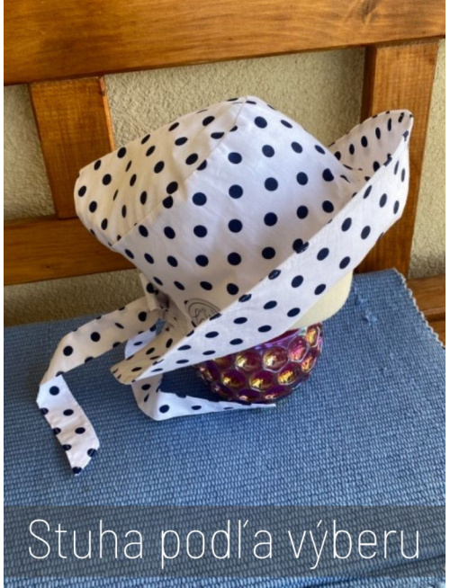 UPOZORNENIE: Okrem predvolenej farby/vzoru stuhy, ktorá je na fotke, si môžete vybrať aj inú farbu/vzor stuhy zo vzorkovníka - 100% pevná bavlna. Klobúk so stuhou vo vami vybranej farbe/vzore vám s radosťou ušijeme. :) Ak zvolíte v kolónke FARBA možnosť "stuha podľa vlastného výberu zo vzorkovníka", prosím zadajte v závere objednávky do kolónky POZNÁMKA Kód tohto produktu + kód vzorky látky, v ktorej si želáte stuhu na klobúk ušiť. Napríklad: Kód produktu: 0841, Farba/vzor stuhy: Biela (67).