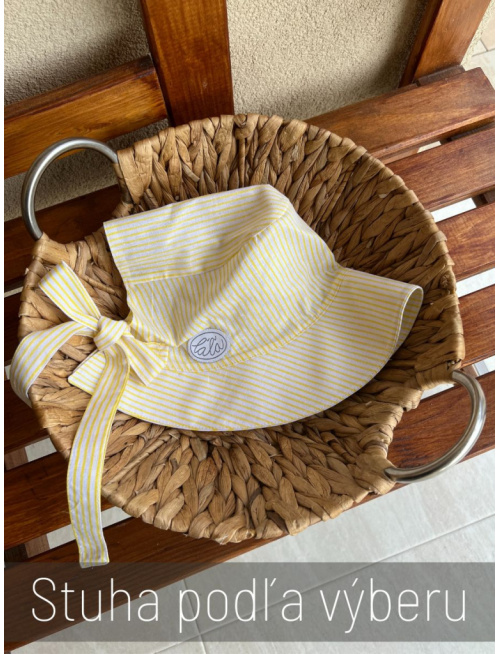 UPOZORNENIE: Okrem predvolenej farby/vzoru stuhy, ktorá je na fotke, si môžete vybrať aj inú farbu/vzor stuhy zo vzorkovníka - 100% pevná bavlna. Klobúk so stuhou vo vami vybranej farbe/vzore vám s radosťou ušijeme. :) Ak zvolíte v kolónke FARBA možnosť "stuha podľa vlastného výberu zo vzorkovníka", prosím zadajte v závere objednávky do kolónky POZNÁMKA Kód tohto produktu + kód vzorky látky, v ktorej si želáte stuhu na klobúk ušiť. Napríklad: Kód produktu: 0875, Farba/vzor stuhy: Biela (67).