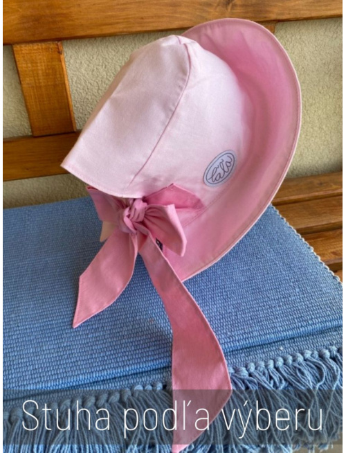 V lete by nemala byť žiadna hlávka bez klobúka. Klobúk je navrhnutý tak, aby bol v pravom slova zmysle rastúcim. Má veľký otvor vzadu a tým pádom sadne na každý obvod hlávky, ale kvôli hĺbke sme ho navrhli v štyroch veľkostiach. Klobúk využijete viacero sezón. Vnútro klobúka je stále podšité bielou bavlnou. Šilt sa odkláňa od tváričky mierne. Stuha sa pôvodne navrhla úzka kvôli malým bábätkám a chlapcom, ale máte ju v obľube aj pre väčšie slečny, tak sme ponechali na výber obe verzie stuhy úzka (2,5 cm) alebo široká (5 cm). Zo širokej stuhy uviažete bohatú mašľu pre veľké a malé parádnice.