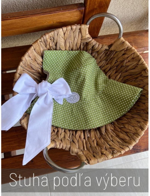 V lete by nemala byť žiadna hlávka bez klobúka. Klobúk je navrhnutý tak, aby bol v pravom slova zmysle rastúcim. Má veľký otvor vzadu a tým pádom sadne na každý obvod hlávky, ale kvôli hĺbke sme ho navrhli v štyroch veľkostiach. Klobúk využijete viacero sezón. Vnútro klobúka je stále podšité bielou bavlnou. Šilt sa odkláňa od tváričky mierne. Stuha sa pôvodne navrhla úzka kvôli malým bábätkám a chlapcom, ale máte ju v obľube aj pre väčšie slečny, tak sme ponechali na výber obe verzie stuhy úzka (2,5 cm) alebo široká (5 cm). Zo širokej stuhy uviažete bohatú mašľu pre veľké a malé parádnice.