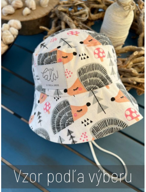 UPOZORNENIE: Okrem predvolenej farby/vzoru klobúka, ktorý je na fotke, si môžete vybrať aj inú farbu/vzor klobúka zo vzorkovníka - 100% pevná bavlna. Klobúk vo vami vybranej farbe/vzore vám s radosťou ušijeme. :) Ak zvolíte v kolónke FARBA možnosť "vlastný výber látky zo vzorkovníka", prosím zadajte v závere objednávky do kolónky POZNÁMKA Kód tohto produktu + kód vzorky látky, v ktorej si želáte klobúk ušiť. Napríklad: Kód produktu: 0928, Farba/vzor klobúka: Sivá (68).