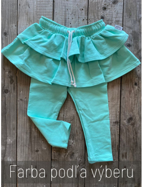 Elegantné legínky s pridanou bohatou sukničkou. V páse majú funkčnú šnúrku.