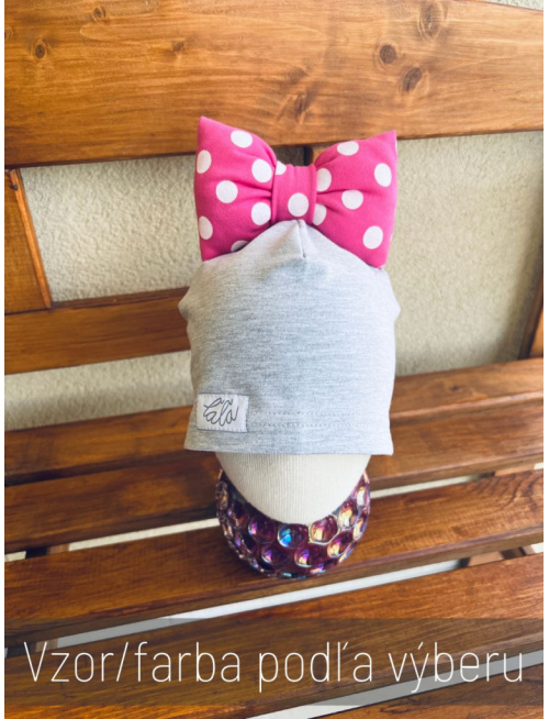 Tepláková čiapka s BIG mašľou - kombinovaná