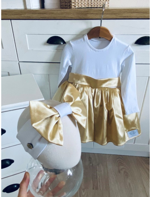 Úpletová čelenka s efektnou mašľou navrhnutá tak, aby bola aj funkčná a kryla ušká pred vetríkom. Saténová mašľa a elegantná krúžková etiketa dodáva celkovému vzhľadu luxusný efekt.