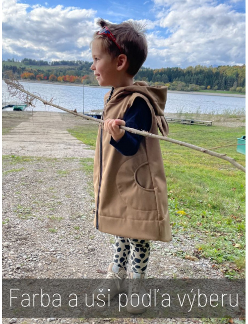 Rastúca softshell vesta so stojačikovou kapucňou - DOMI s uškami - jeseň/ZIMA