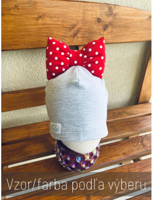 Tepláková čiapka s BIG mašľou - kombinovaná