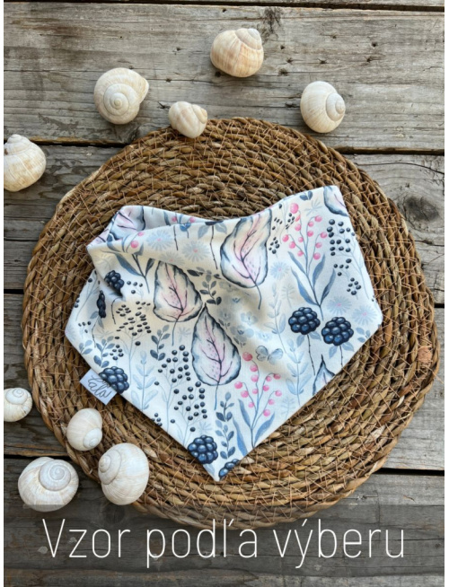 Nákrčník ušitý vždy z dvoch vrstiev. Najvhodnejší doplnok pre detičky, ktorým sa prerezávajú zúbky. Dokonale poslúži ako slintáčik. Pre široký diel vzadu na dve cvočky zároveň výborne kryje krk pred chladom.