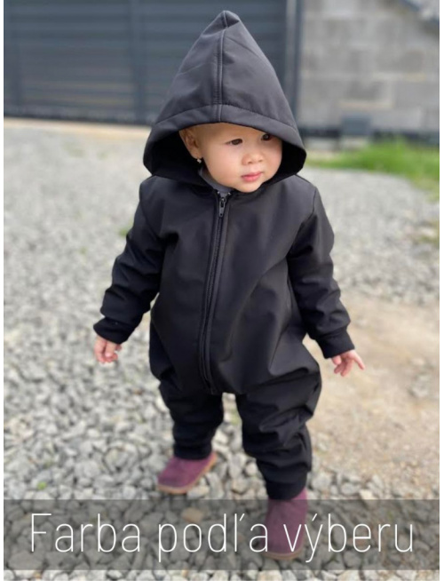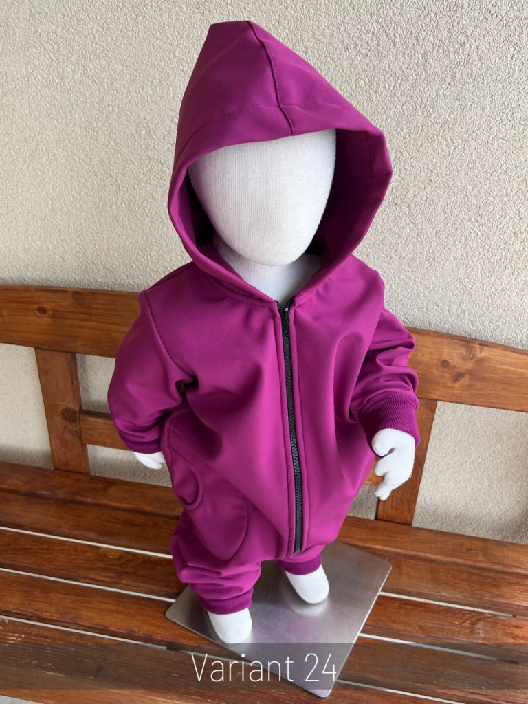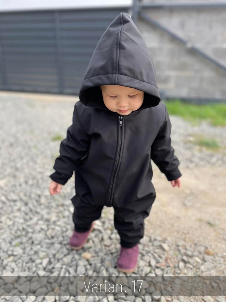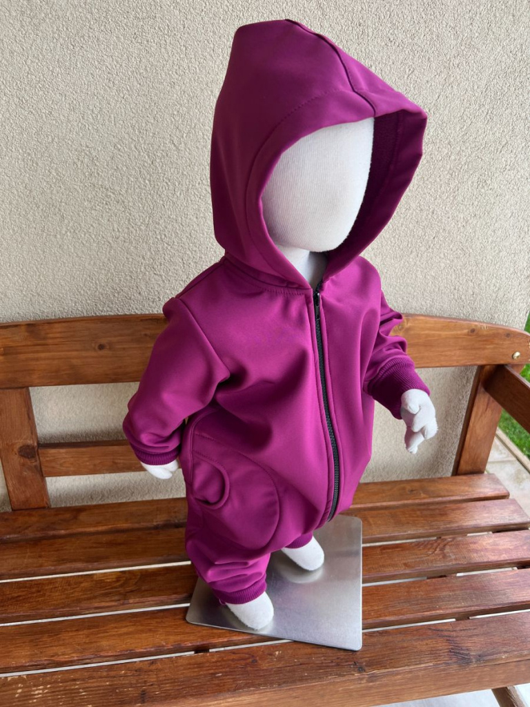 Funkčný overal zo zimného softshellu s vreckami a rastúcimi manžetami z patentoviny vhodný na jesenné a zimné obdobie. Kapucňa je podšitá softshellom vo farbe overalu.