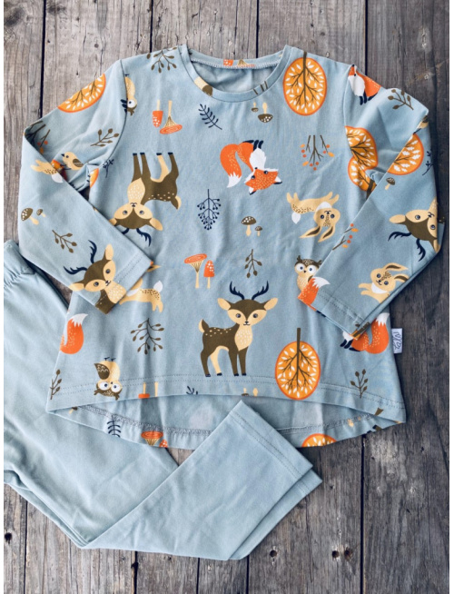 Detské pyžamko Lesné zvieratká na mineral - tunikový strih