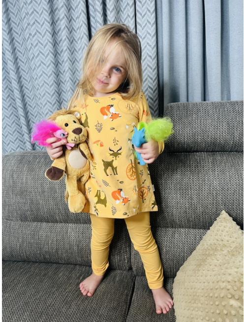 Detské pyžamko Lesné zvieratká na horčici - tunikový strih - POSLEDNÝ KUS