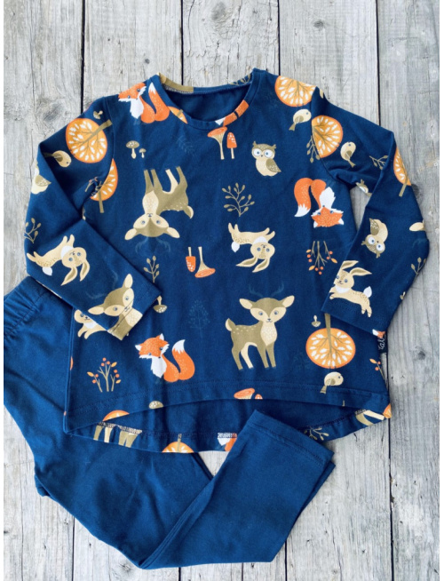 Detské pyžamko Lesné zvieratká na tmavomodrej - tunikový strih