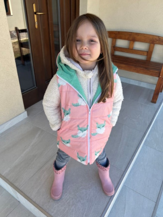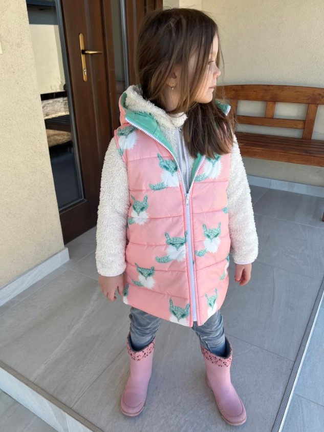 Rastúca vesta LÍŠKA so stojačikovou kapucňou - DOMI