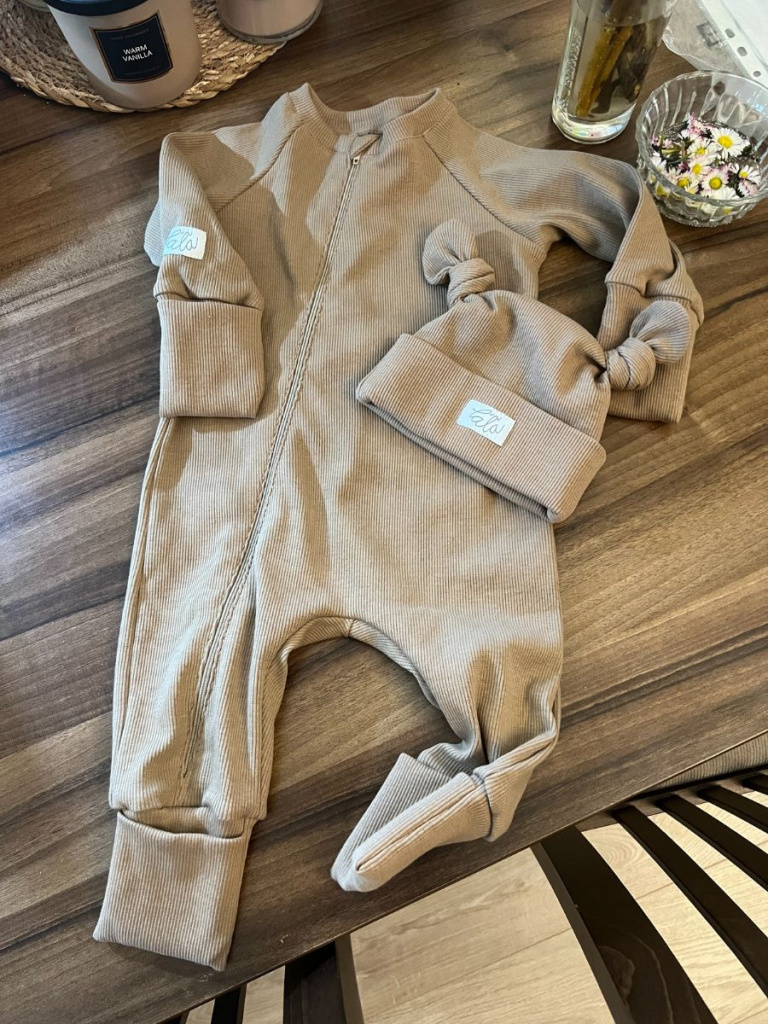 SET Rebro NEW BORN overal + mini rebro čiapočka s uzlíčkami
