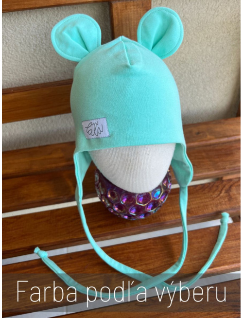 Úpletová ušiačka so šnúrkami na jarno-jesenné obdobie obohatená macko uškami. Na uškách je vždy látka dvojmo, vďaka čomu čiapka skvelo kryje a chráni ušká. Materiál úplet je oproti teplákovine malinko tenší, no najmä elastickejší.