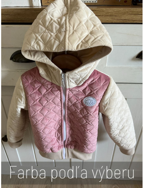 Bomber bundička s kapucňou zo semišového prešiváku kombinovaná v dvoch farbách s rastúcimi manžetami. Bundička má po novom vždy vrecká. Zapínanie bundičky je na zips. Bundička je podšitá. Dĺžkovo nie je bundička krátka, siaha približne do polky zadku. :) Na chrbte má prestrihnuté sedlo kvôli krajšiemu efektu dvojfarebnej bundy.