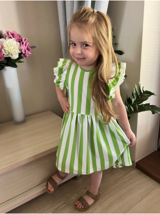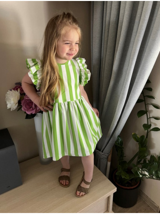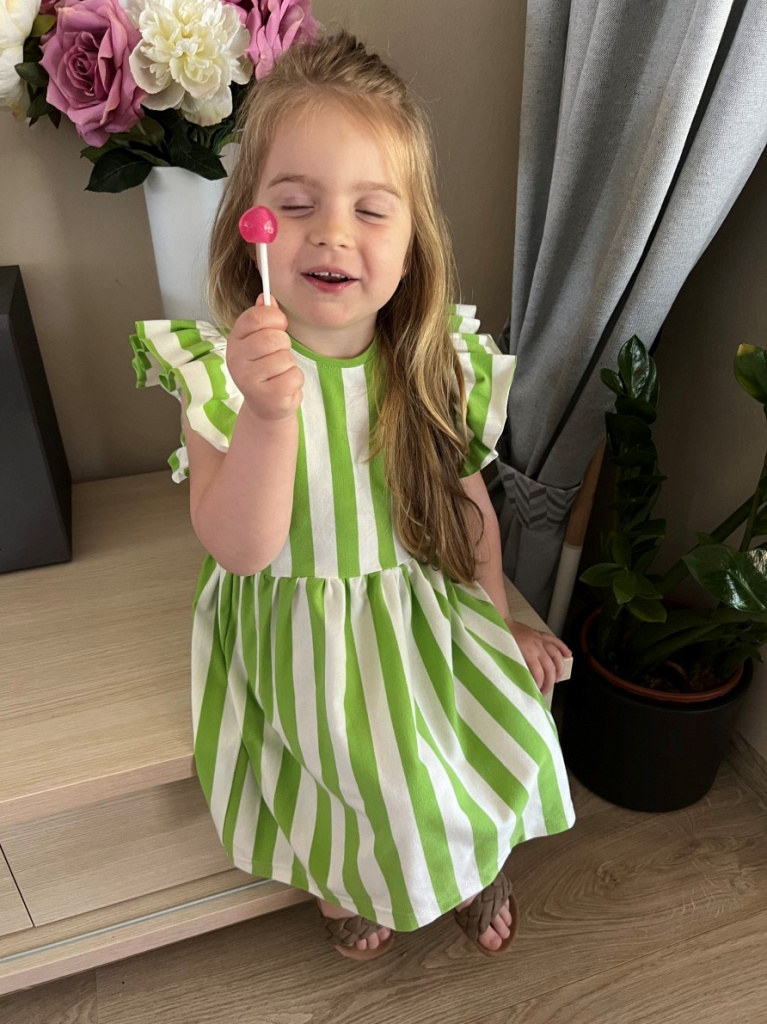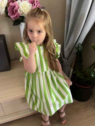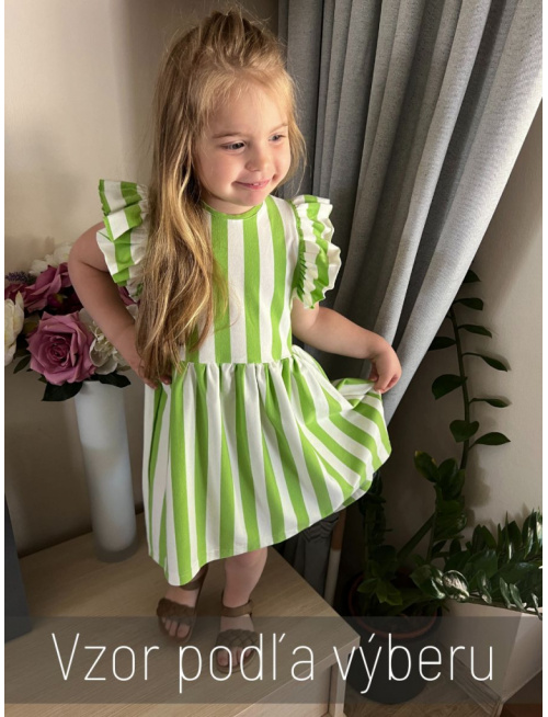 Šaty pre dievčatá sú v dokonale pohodlnom strihu s prestrihom v páse a riasenou sukňou s vlečkou. Sú spestretené bohato riaseným volánom namiesto rukávov. Výstrih sme málinko zväčšili pre väčšie pohodlie pri obliekaní.