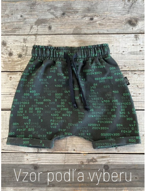 Teplákové krátke gate s vyhnutým dolným krajom. Tento pudlový strih je veľmi pohodlný. Hĺbka sedu nie je prehnaná, je navrhnutá tak, aby sa drobcovi dobre šantilo aj na odrážadle. V páse je funkčná šnúrka. Gate sú bez vreciek.