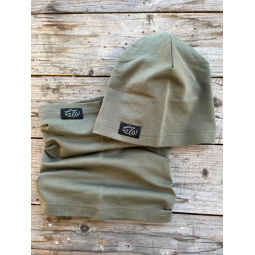 Príjemne elastický set tepláková čiapka v predĺženom strihu + tunel.