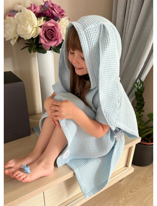 Detské vaflové pončo s uškami podľa výberu - belaso modré