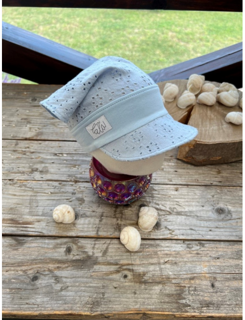 Madeirová šatka LORY na pevno so šiltom - úplet - belasá modrá