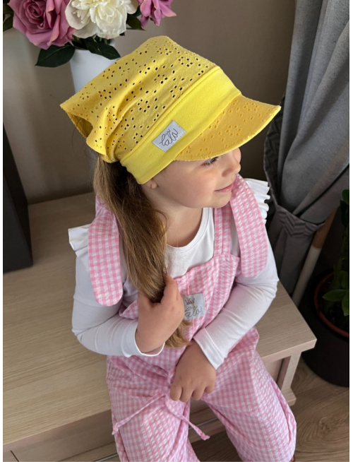 Madeirová šatka LORY na pevno so šiltom - úplet - žltá
