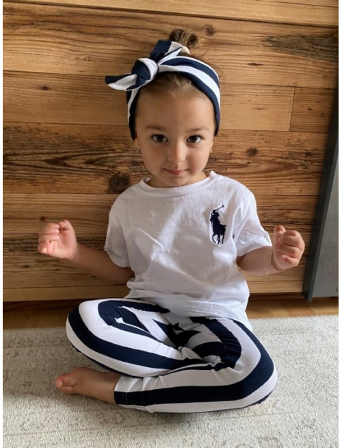 ÚPLETOVÉ legíny KLASIK - hrubý pásik - temná modrá/biela