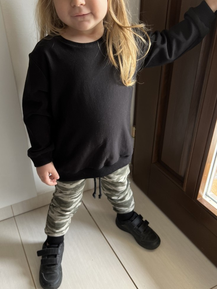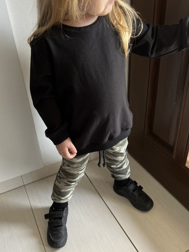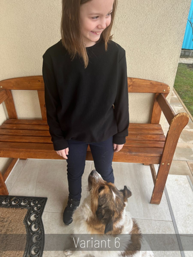 Jednoduchá pohodlná mikinka. Rukávy, trup a taktiež priekrčník su ukončené patentom. Zadný diel je predĺžený do mierneho oblúčika pre efektnejšie krytie krížov.