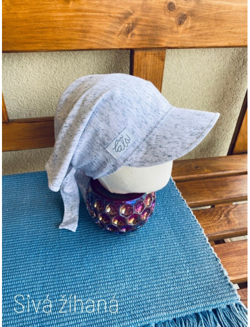 Úpletová šatka so šiltom na viazanie SUMMER - sivá žíhaná - LEN DO VYPREDANIA ZÁSOB