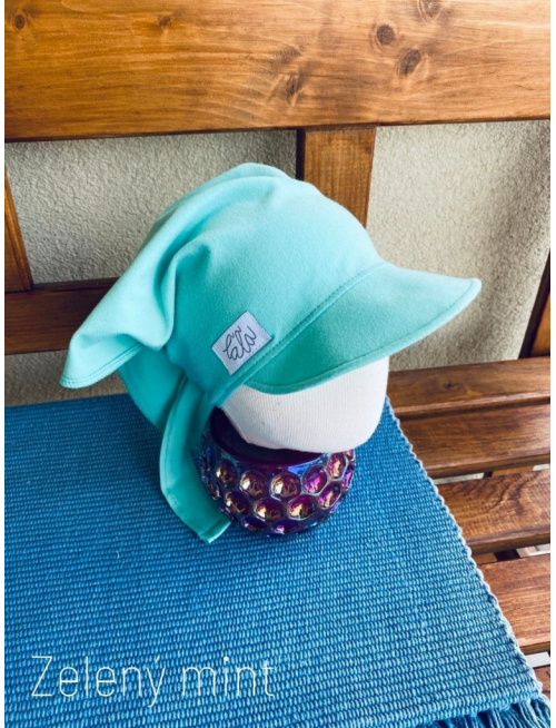 Úpletová šatka so šiltom na viazanie SUMMER - zelený mint - LEN DO VYPREDANIA ZÁSOB