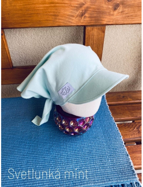 Úpletová šatka so šiltom na viazanie SUMMER - svetlunká mint - LEN DO VYPREDANIA